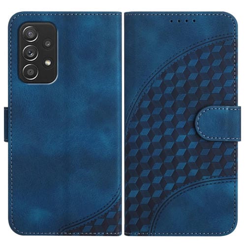 Funda de Cuero Samsung Galaxy A52 4G 5G Yx0060 con Relieve y Cabeza de Elefante con Cordón (Azul Real)