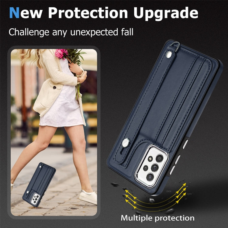 Estuche de Teléfono Samsung Galaxy A52 4G y A52 5G Cuero a Prueba de Golpes con Correa para la Muñeca (Azul)