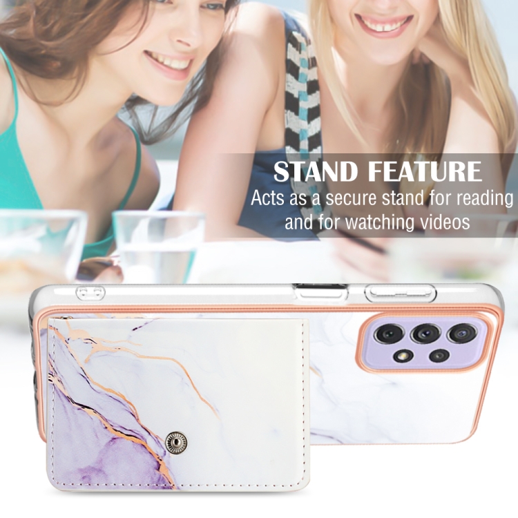 Estuche para Teléfono Samsung Galaxy A52 5G / 4G con Ranura para Tarjeta Imd y Patrón de Mármol (Blanco y Morado)