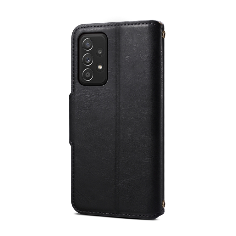 Funda para Teléfono Samsung Galaxy A52 5G Denior Textura Piel de Vaca Estilo Billetera (Negro)
