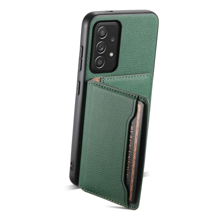 Funda para Teléfono Samsung Galaxy A52 5G Bolsa para Tarjetas Textura de Becerro (Verde)