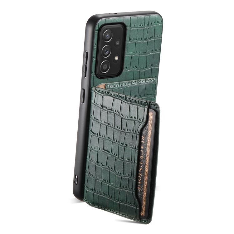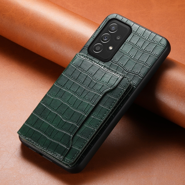 Funda para Teléfono Samsung Galaxy A52 5G Diseño Bolsa para Tarjetas Textura Cocodrilo (Verde)