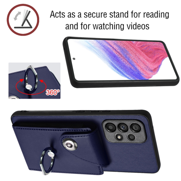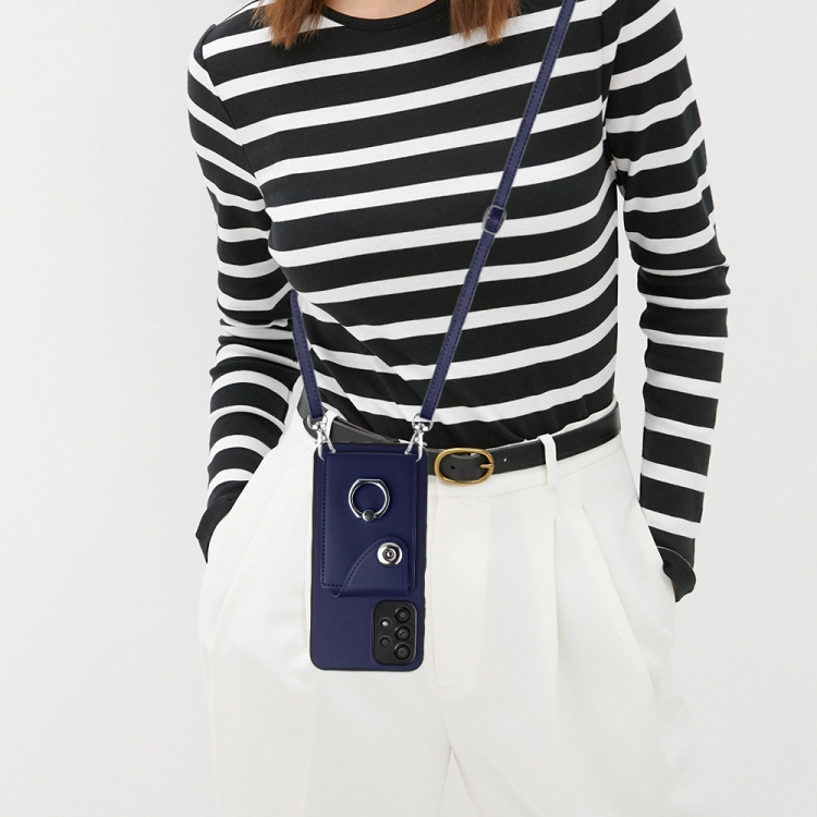 Funda para Teléfono Samsung Galaxy A52 5G con Soporte para Anillo y Bolsa para Tarjeta con Cordón Largo (Azul)