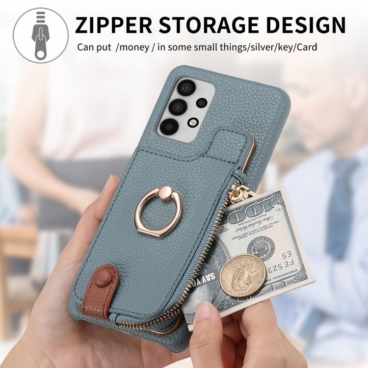 Funda para Teléfono Samsung Galaxy A53 5G Litchi Leather Oil Edge Ring Zipper Wallet Back (Azul)