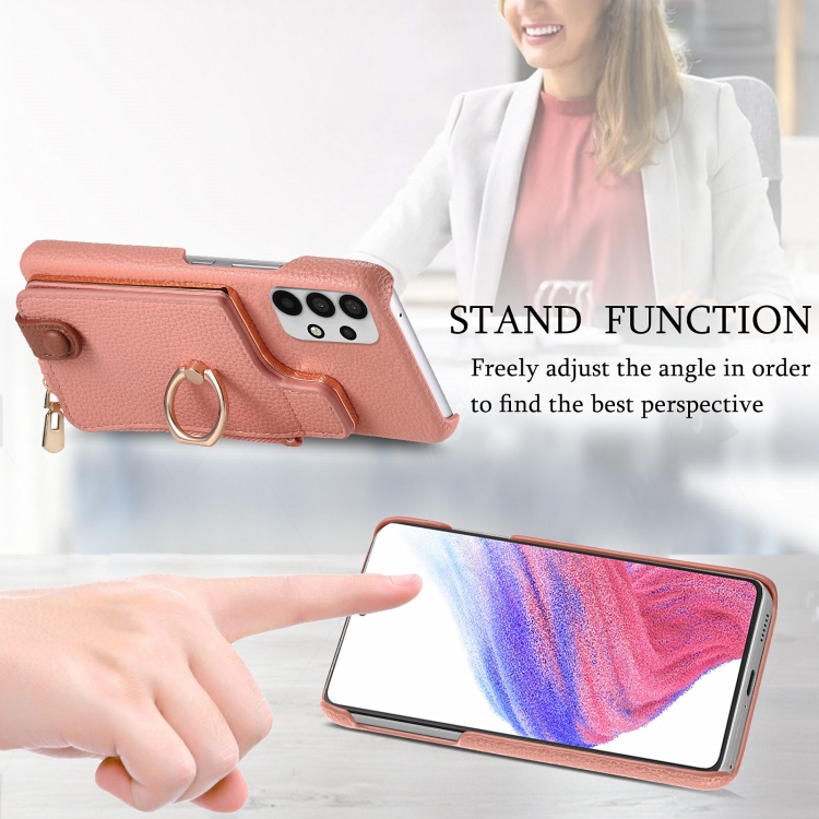Funda para Samsung Galaxy A53 5G Litchi Leather Oil Edge Ring Zipper Wallet Back (Rosa)
