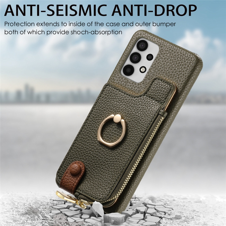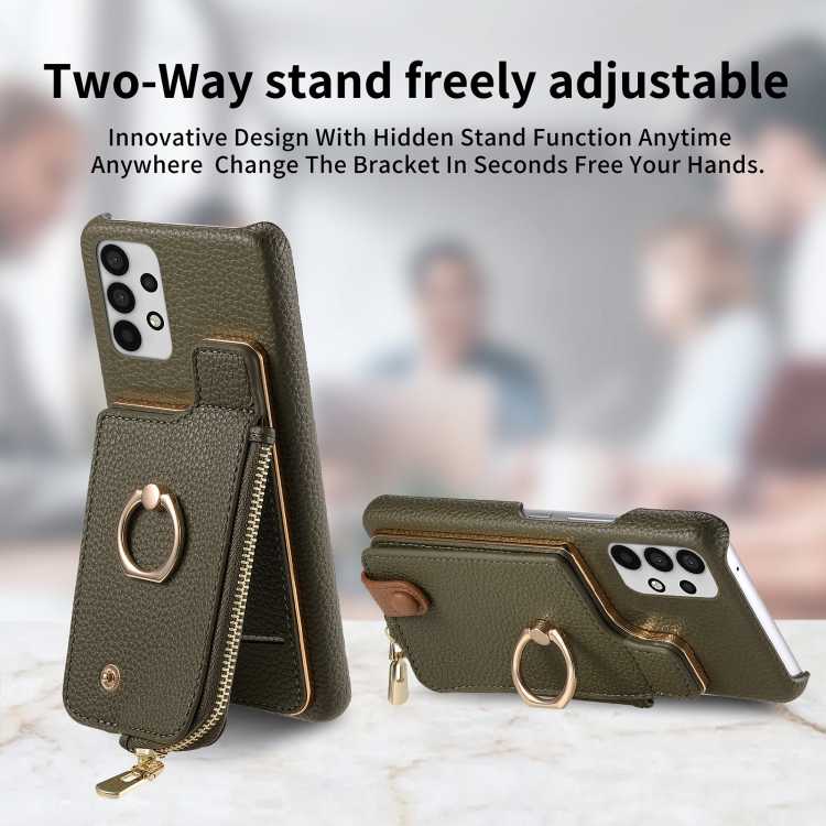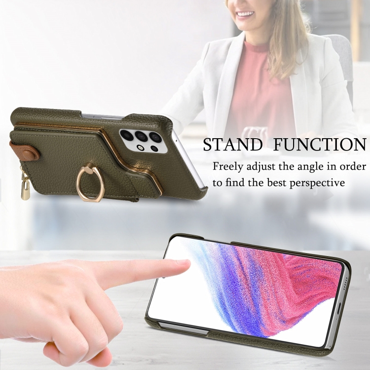 Funda para Samsung Galaxy A53 5G Litchi Leather Oil Edge Ring Zipper Wallet Back (Verde)