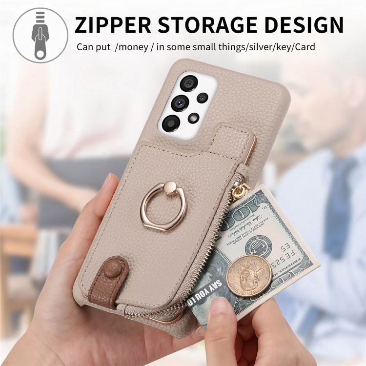 Funda para Teléfono Samsung Galaxy A53 Litchi Leather Oil Edge Ring Zipper Wallet Back (Blanco)