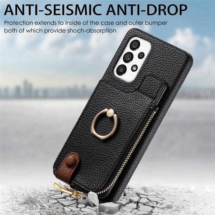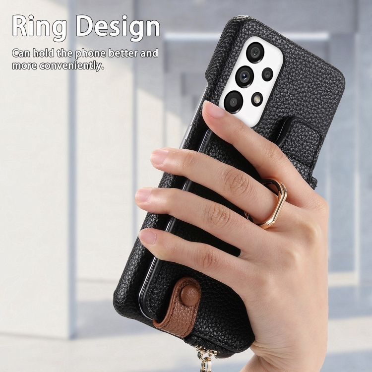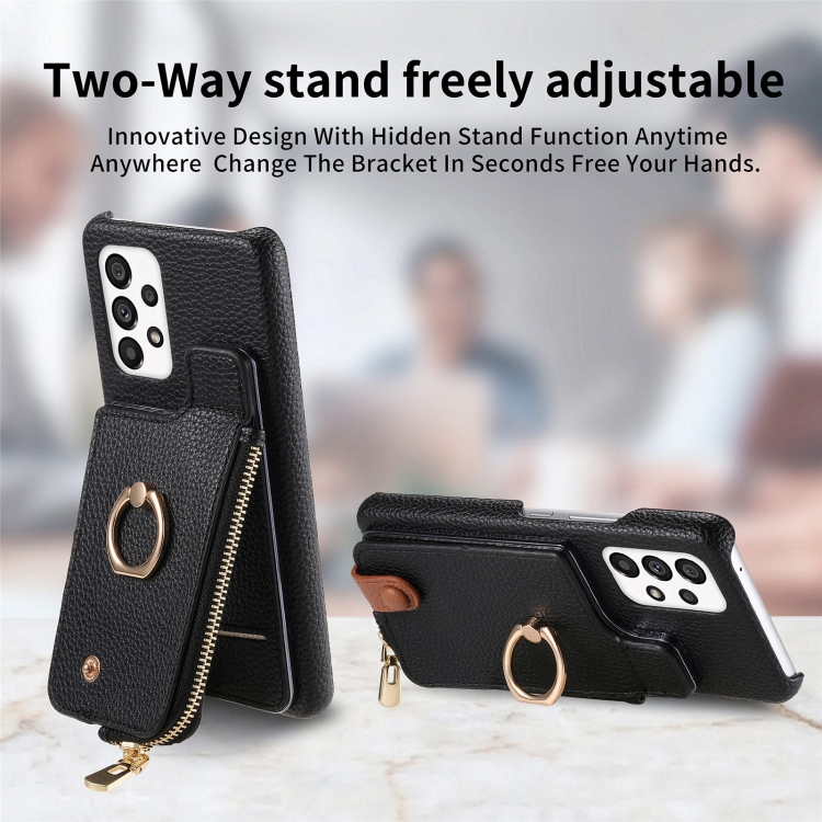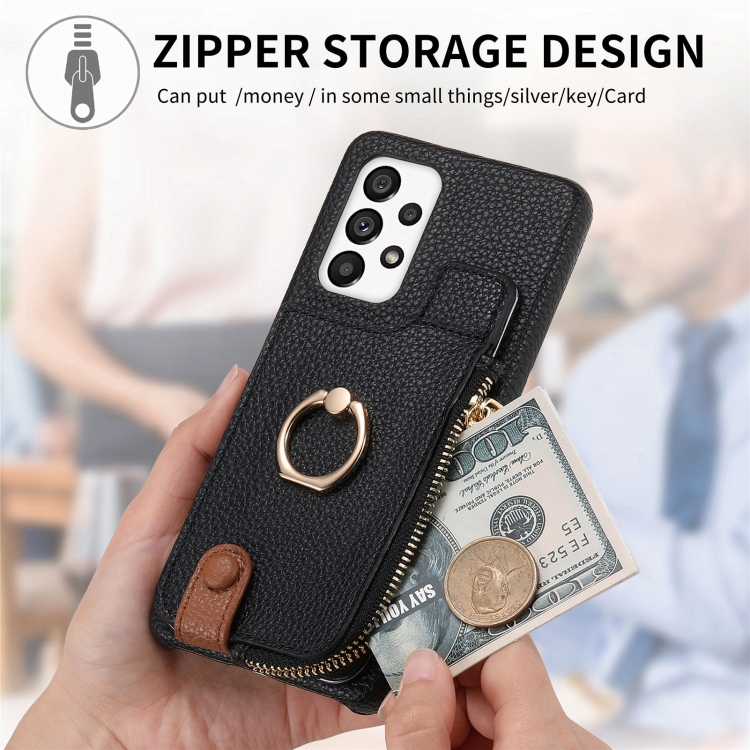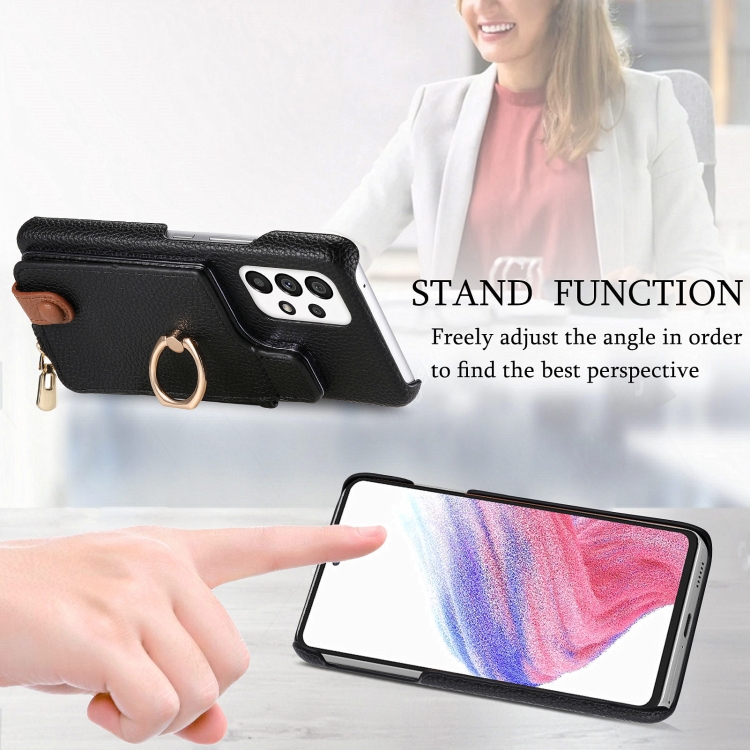 Funda para Samsung Galaxy A53 Litchi Leather Oil Edge Ring Zipper Wallet Back (Negro)