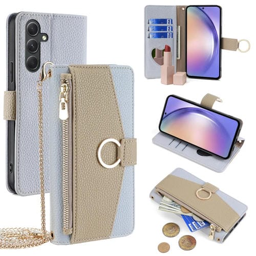 Funda de Cuero Samsung Galaxy A54 5G Crossbody Litchi Texture para Teléfono (Azul)