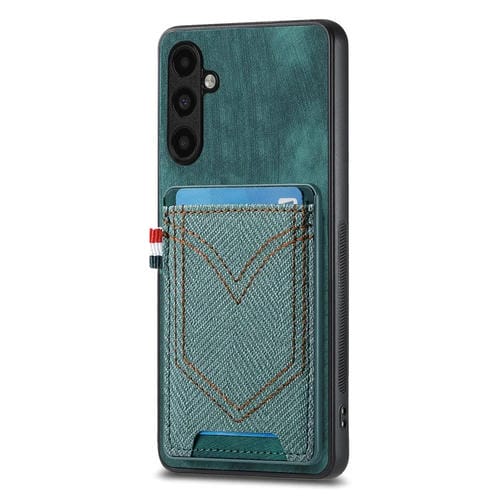 Funda para Teléfono Samsung Galaxy A54 5G Piel de Cuero Textura Vaquera Ranura para Tarjeta (Verde)