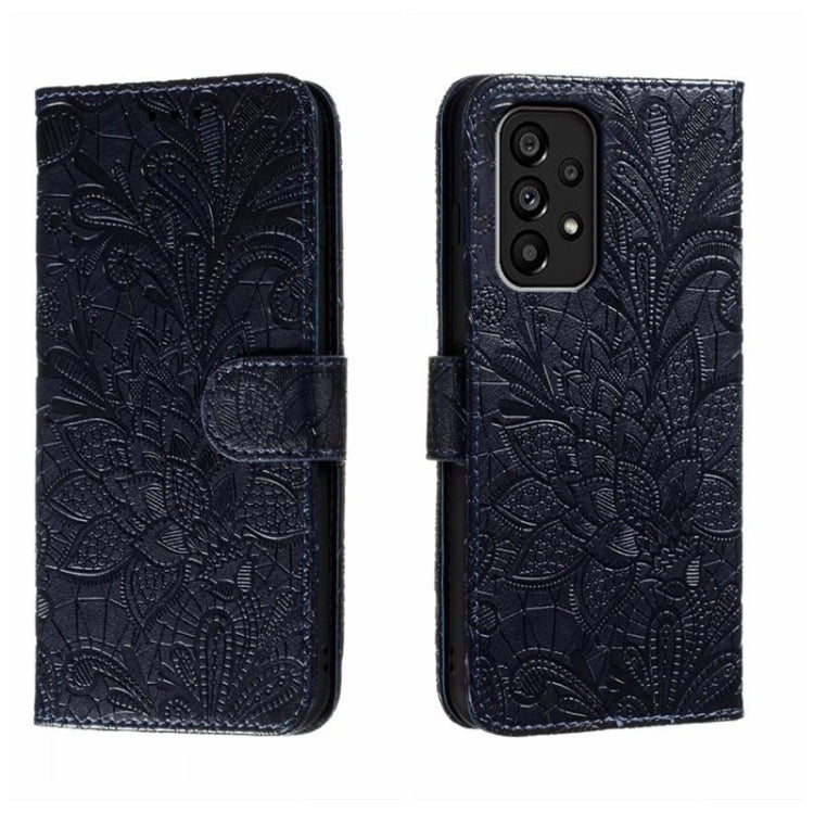 Para Samsung Galaxy A54 5G Lace Flower Relieve Funda de cuero con tapa para teléfono (Azul oscuro)