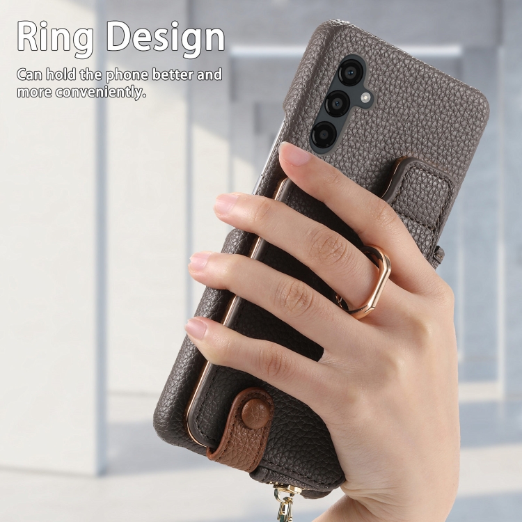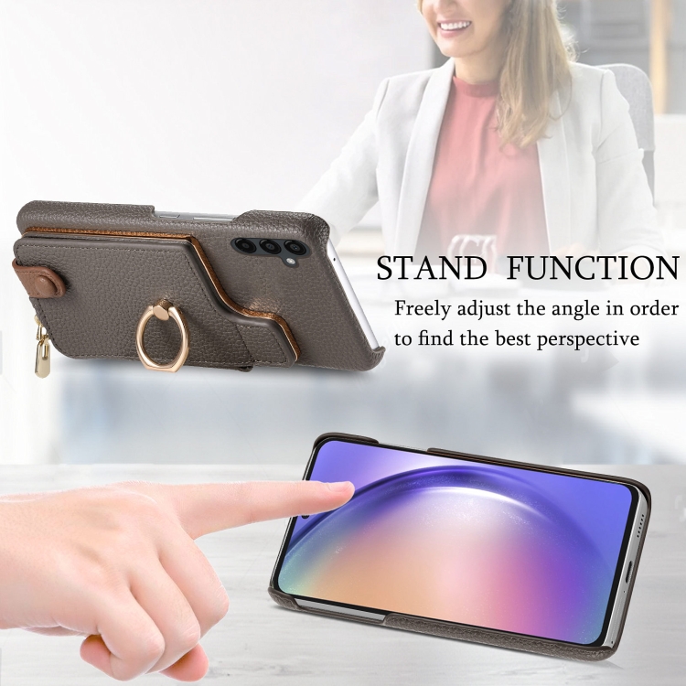Funda para Samsung Galaxy A54 5G Litchi Leather Oil Edge Ring Zipper Wallet Back (Gris)
