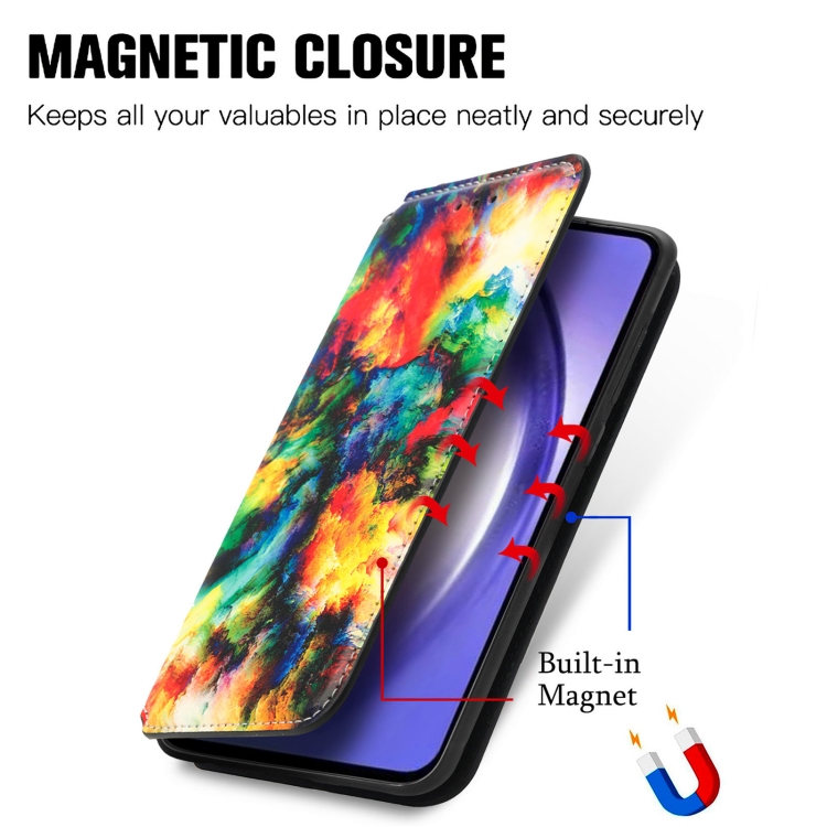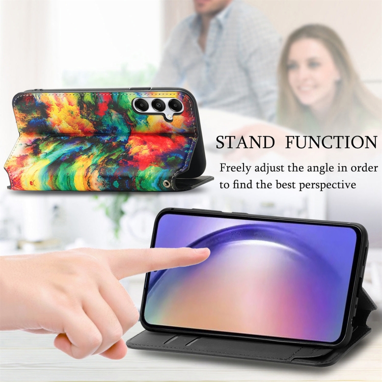 Funda de Cuero Caseneo para Samsung Galaxy A55 5G Magnética Colorida (Nube Colorida)