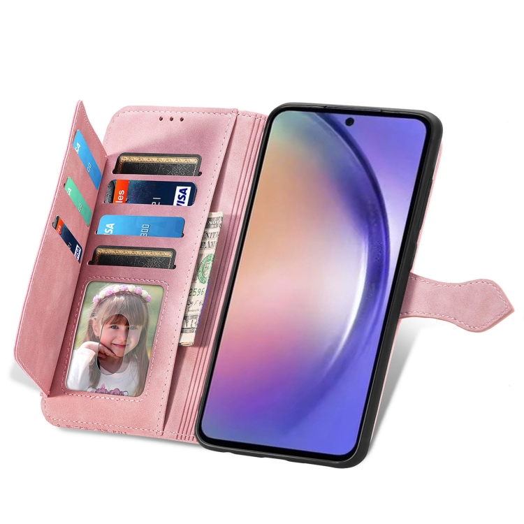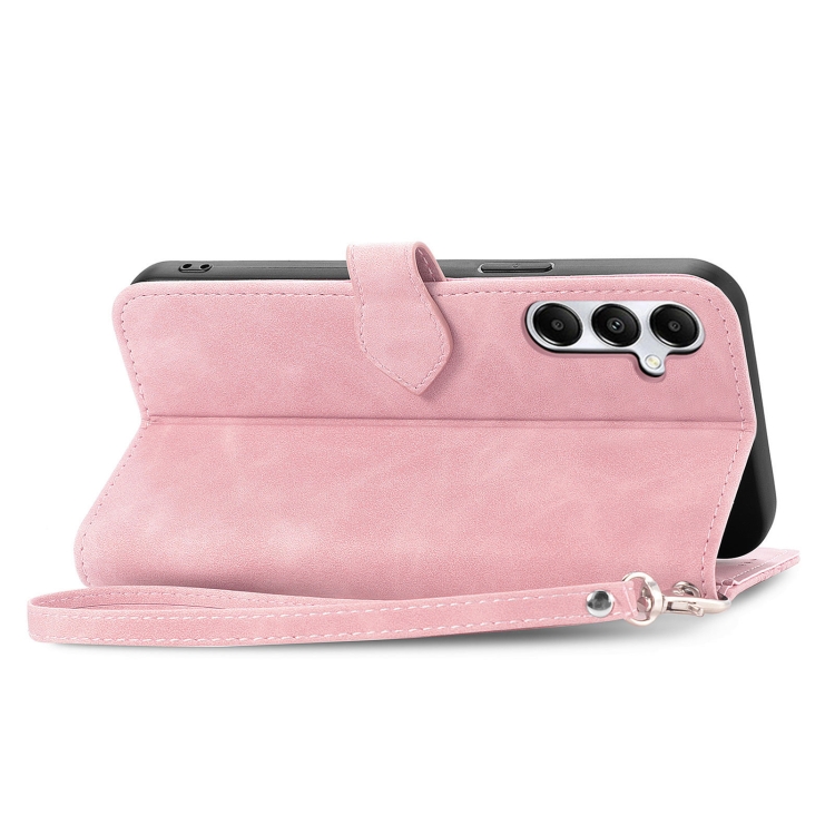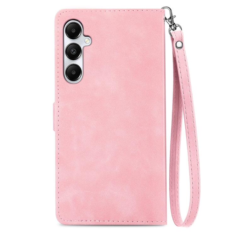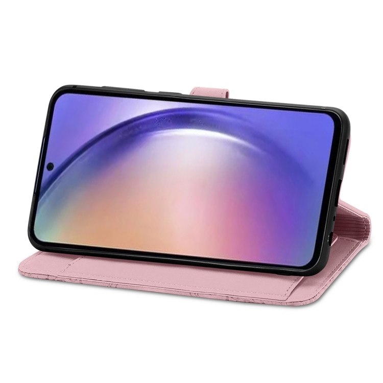 Funda de Cuero para Samsung Galaxy A55 5G con Cremallera y Flores en Relieve (Rosa)