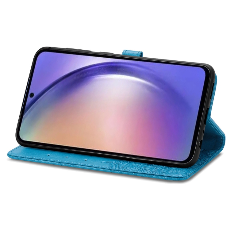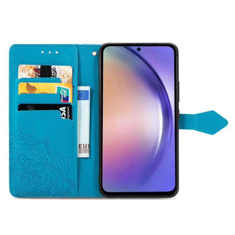 Funda para Teléfono Samsung Galaxy A55 5G Cuero con Relieve Flor de Mandala (Azul)