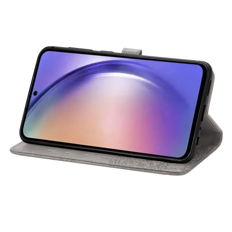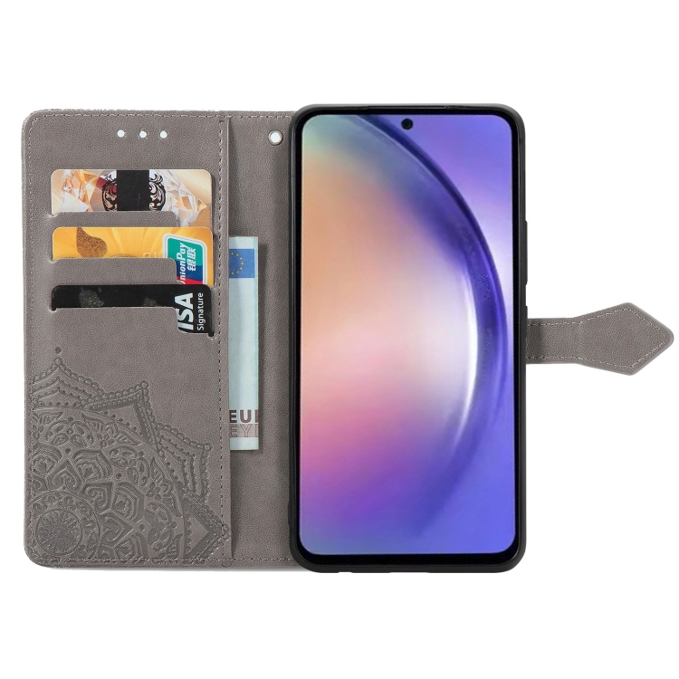 Funda para Teléfono Samsung Galaxy A55 5G Cuero con Relieve de Flor de Mandala (Gris)