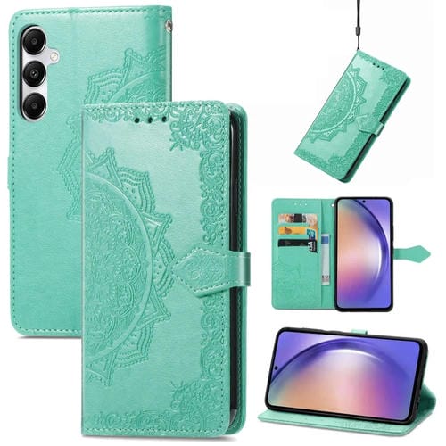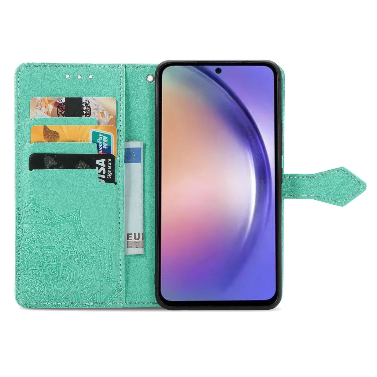 Funda para Teléfono Samsung Galaxy A55 5G Cuero Relieve Flor de Mandala (Verde)