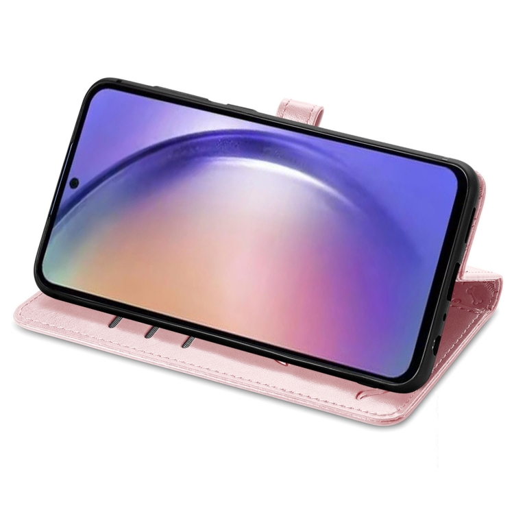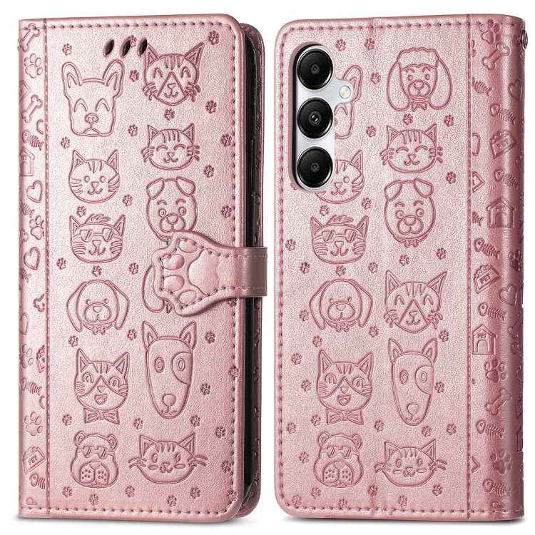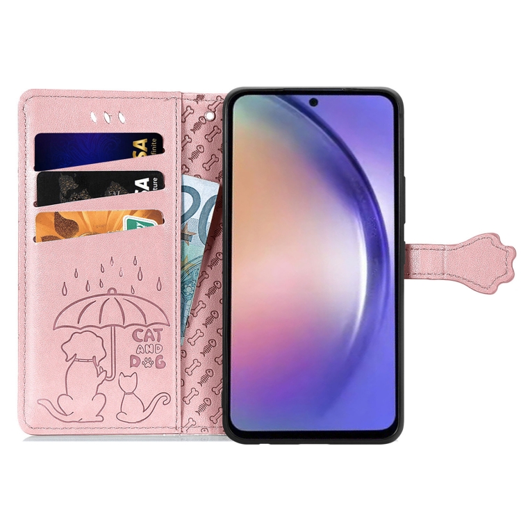 Funda para Teléfono Samsung Galaxy A55 5G Cuero Relieve Perro y Gato (Oro Rosa)