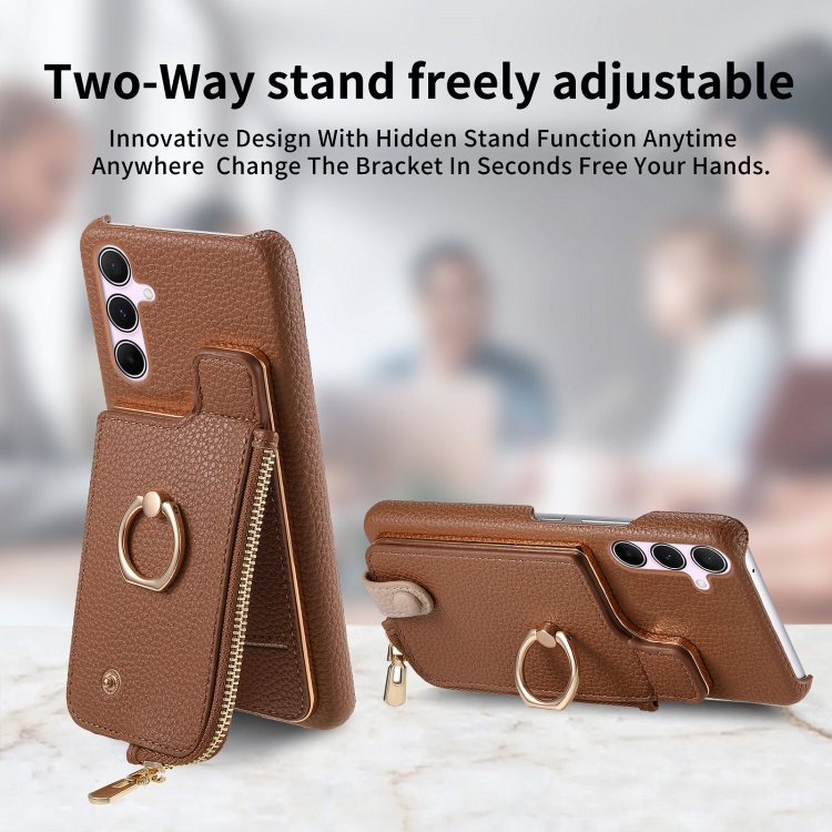 Funda para Teléfono Samsung Galaxy A55 5G Litchi Leather Oil Edge Ring Zipper Wallet (Marrón)