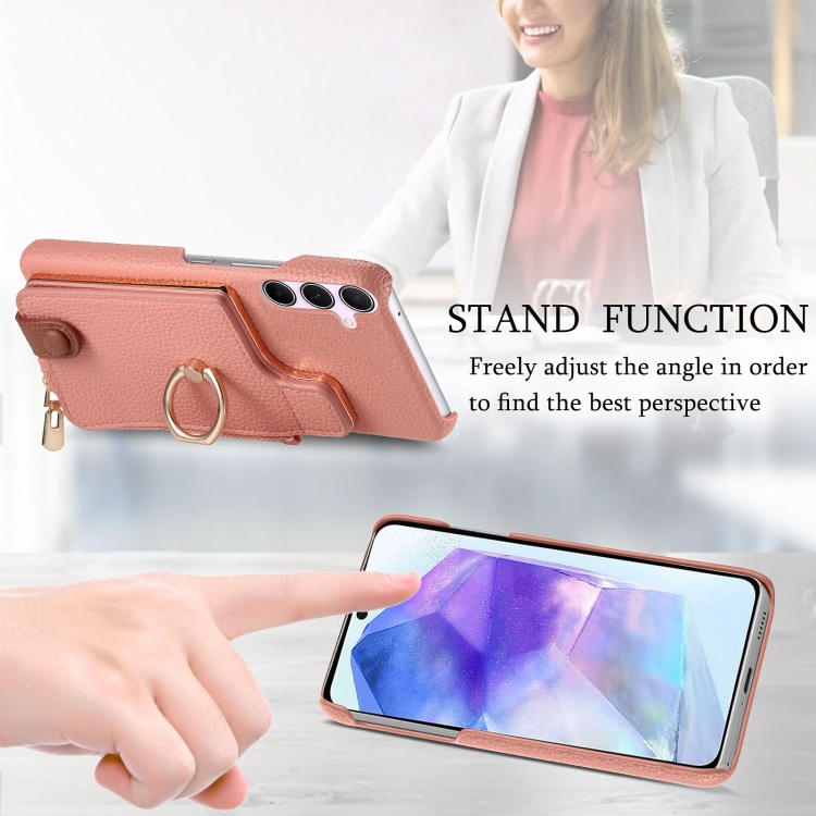 Funda para Samsung Galaxy A55 5G Litchi Leather Oil Edge Ring Zipper Wallet Back (Rosa)