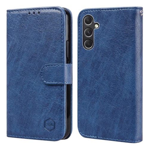 Funda para Teléfono Samsung Galaxy A55 5G Sensación de Piel Textura de Cuero Aceitoso Pu + TPU (Azul Oscuro)