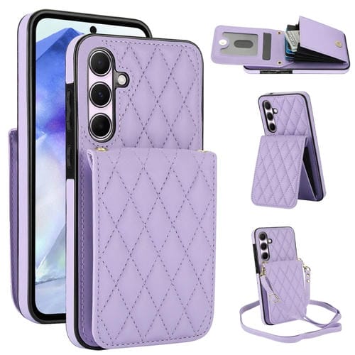Funda Cruzada para Samsung Galaxy A55 5G Ym015 con Tarjeta Rómbica Rfid (Púrpura Claro)