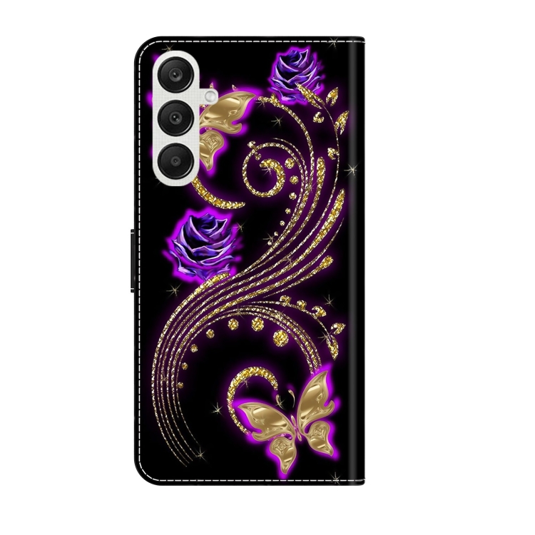 Funda Protectora de Cuero Samsung Galaxy A55 Crystal 3D a Prueba de Golpes (Mariposa de Flor Púrpura)
