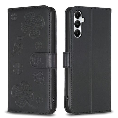 Funda de Cuero Samsung Galaxy A55 con Relieve de Cuatro Hojas (Negro)