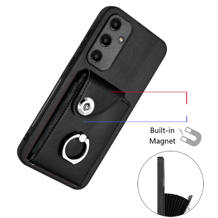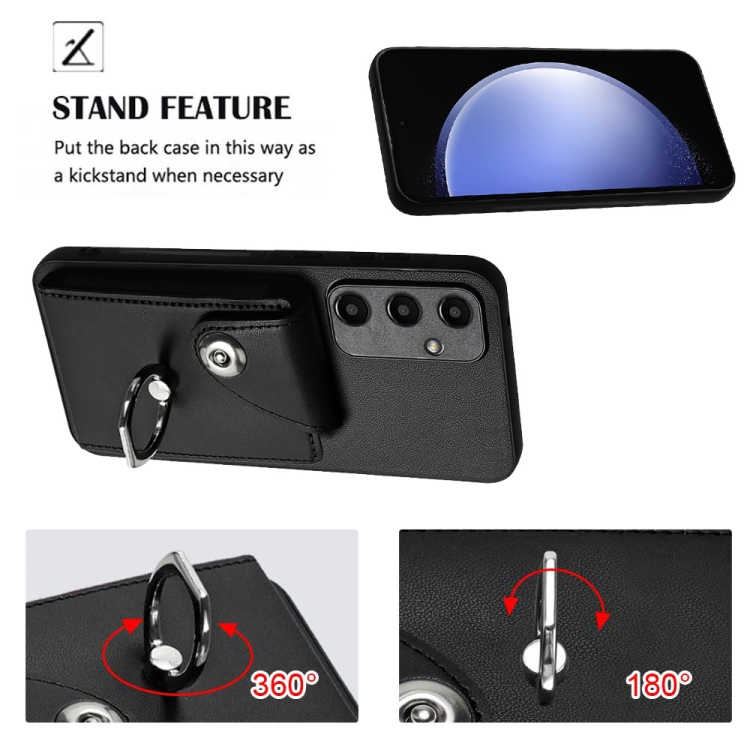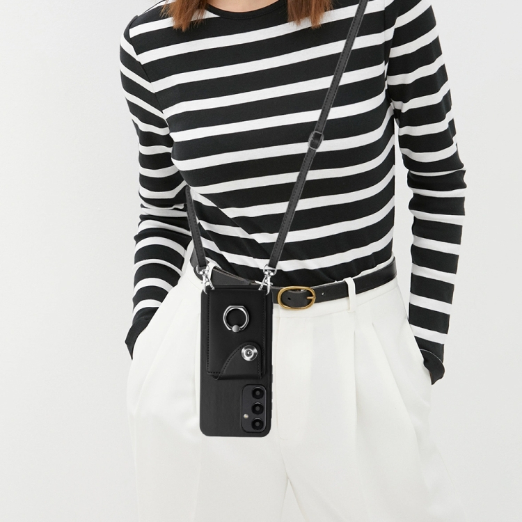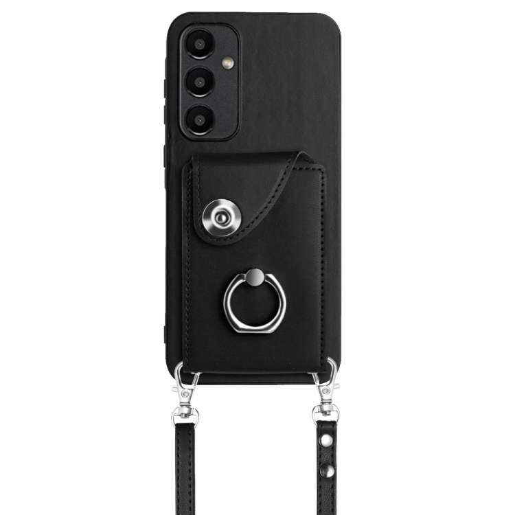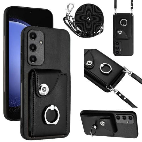 Funda para Teléfono Samsung Galaxy A55 con Soporte para Anillo y Bolsa para Tarjeta con Cordón Largo (Negro)