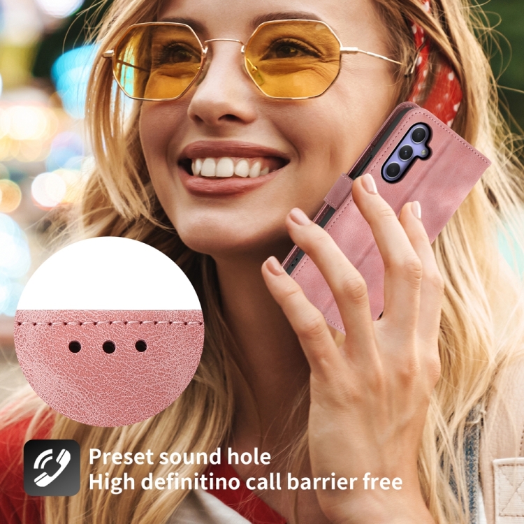 Funda para Teléfono Samsung Galaxy A55 Cuero con Billetera en Relieve y Flores (Rosa)