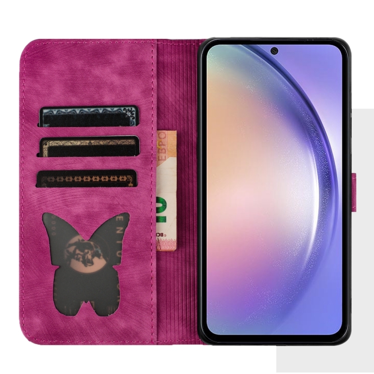 Funda para Teléfono Samsung Galaxy A55 Cuero con Tapa en Relieve Butterfly Cat (Rosa)