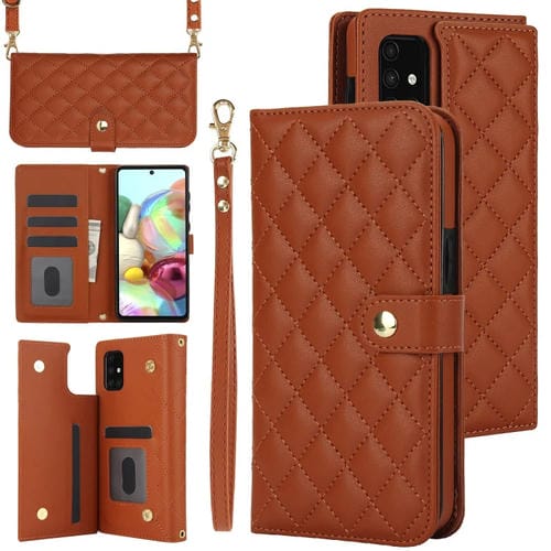 Funda Cruzada de Cuero Samsung Galaxy A71 4G Rómbico Multifunción (Marrón)