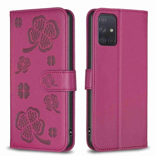Funda de Cuero Samsung Galaxy A71 4G Relieve de Cuatro Hojas (Rojo Rosa)