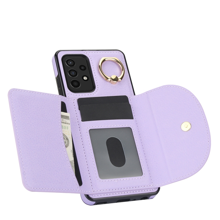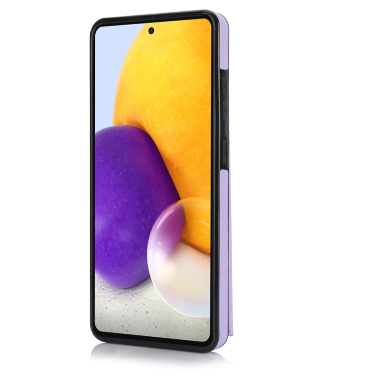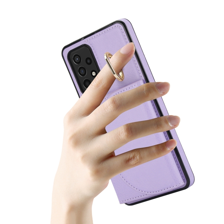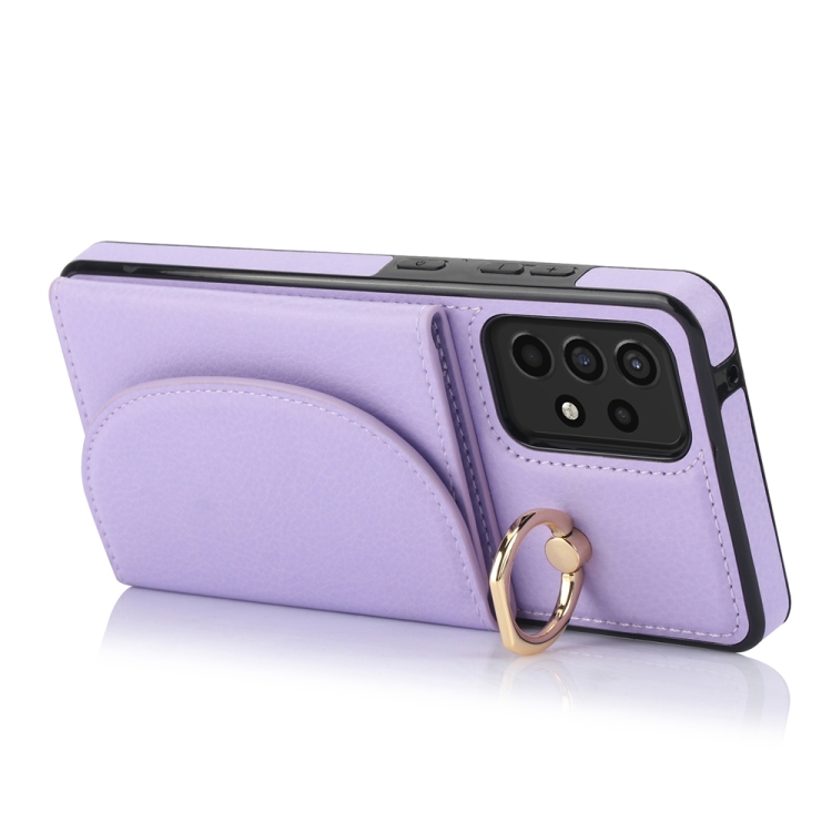 Funda para Samsung Galaxy A72 4G y 5G Ym007 con Soporte para Anillo y Tarjeta con Sensación de Piel (Púrpura)