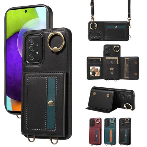 Funda de cuero Crossbody Wallet Bag con Ring Holder para Samsung Galaxy A72 5G / 4G (Negro)