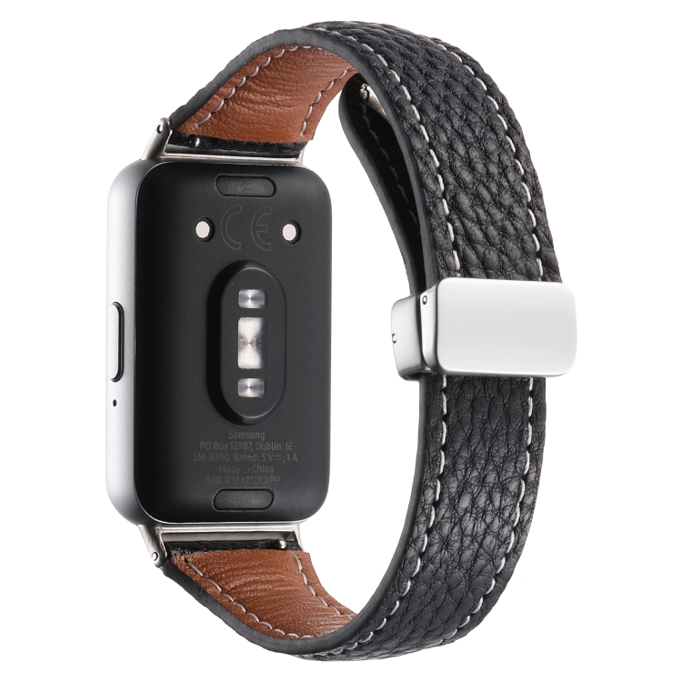 Correa de Reloj para Samsung Galaxy Fit 3 Cuero Delgada con Hebilla Magnética y Textura Litchi (Negro)