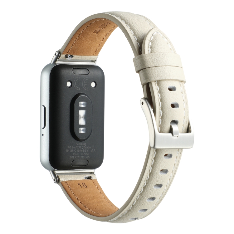 Correa de Reloj para Samsung Galaxy Fit 3 Cuero Genuino con Cola Puntiaguda (Blanco Lechoso)