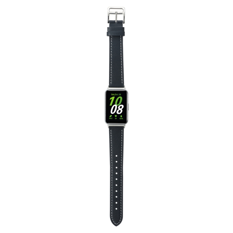 Correa de Reloj para Samsung Galaxy Fit 3 Cuero Genuino con Hilo de Coser (Azul Medianoche)