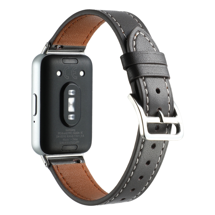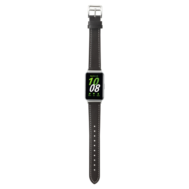 Correa de Reloj para Samsung Galaxy Fit 3 Cuero Genuino con Hilo de Coser (Café)