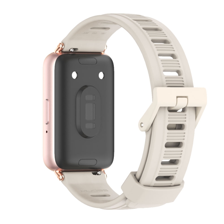 Correa de Silicona para Samsung Galaxy Fit 3 Mijobs con Orificio Plano (Gris + Oro Rosa)