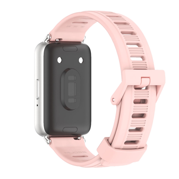 Correa de Silicona para Samsung Galaxy Fit 3 Mijobs con Orificio Plano (Rosa + Plateado)