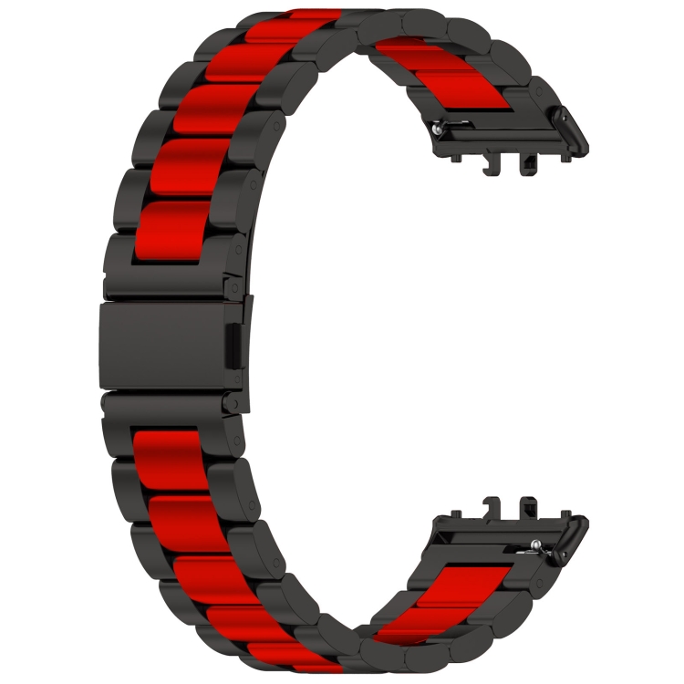 Correa de Reloj Samsung Galaxy Fit 3 SM-R390 Metal Acero Inoxidable Tres Cuentas (Negro + Rojo)