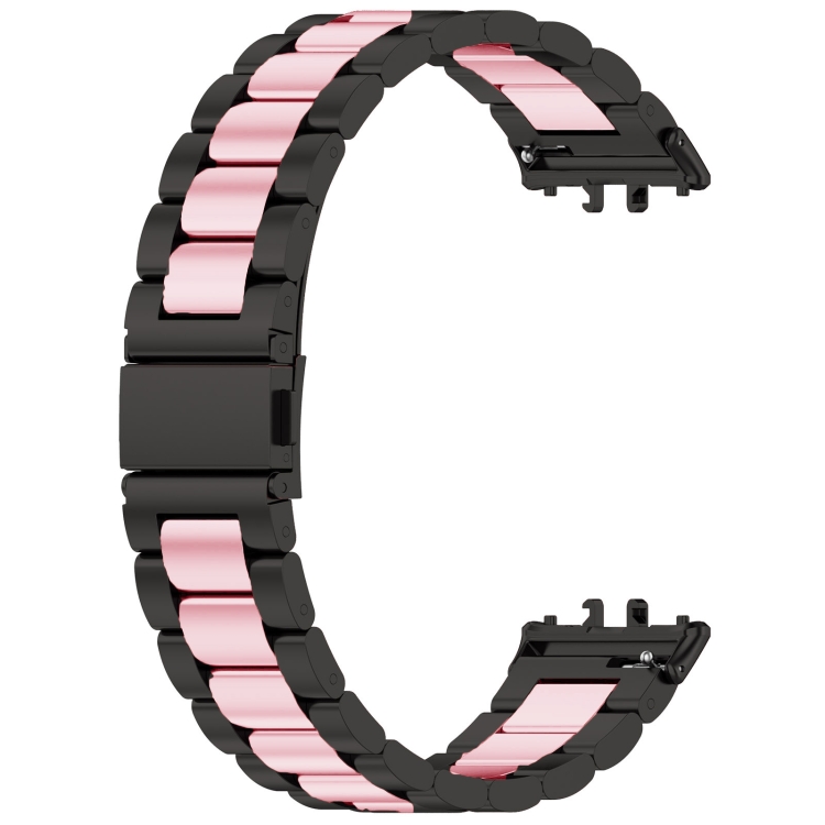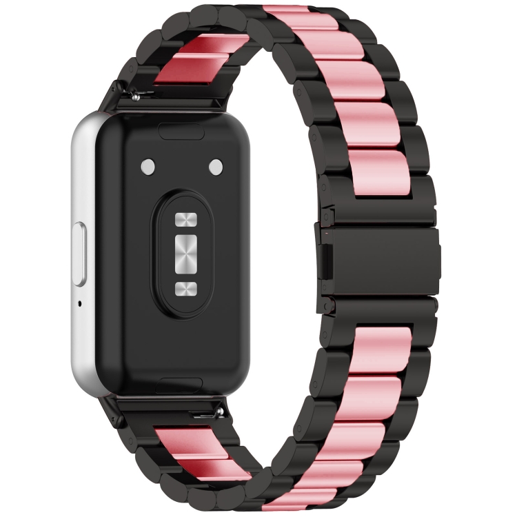 Correa de Reloj Samsung Galaxy Fit 3 SM-R390 Metal Acero Inoxidable Tres Cuentas (Negro + Rosa)