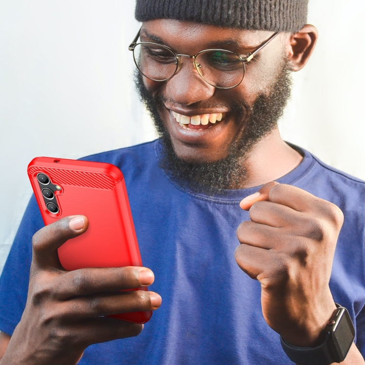 Funda para Teléfono Samsung Galaxy Jump 3 TPU Textura Cepillada Fibra de Carbono (Rojo)