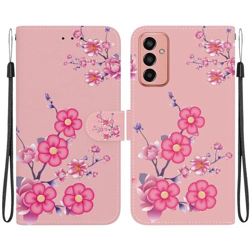Funda de Cuero Samsung Galaxy M13 4G con Dibujo Coloreado Textura de Cristal (Flores de Cerezo)