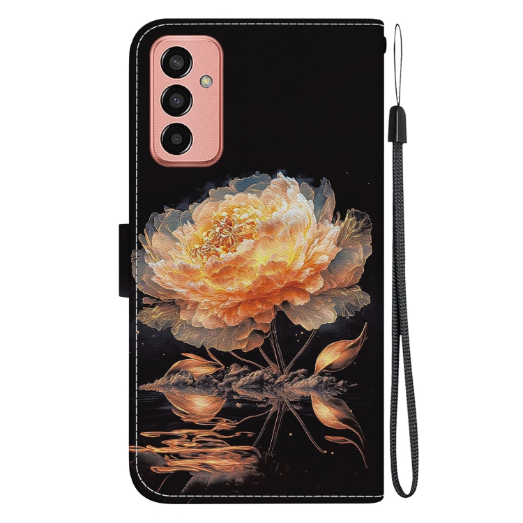 Funda de Cuero para Samsung Galaxy M13 4G con Dibujo Coloreado y Textura de Cristal (Peonía Dorada)