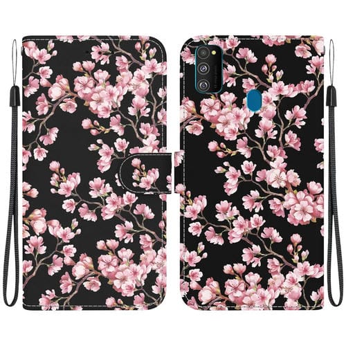 Funda para Teléfono Samsung Galaxy M30S / M21 Cuero Dibujo Coloreado Textura de Cristal (Flor de Ciruelo)