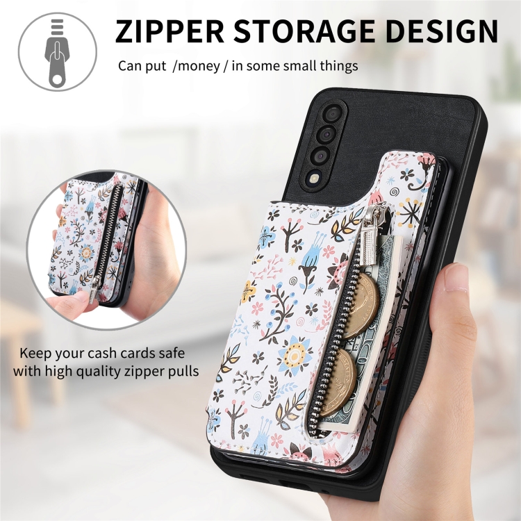 Estuche para Teléfono Samsung Galaxy M32 4G con Billetera y Cremallera Pintada Retro (Negro)