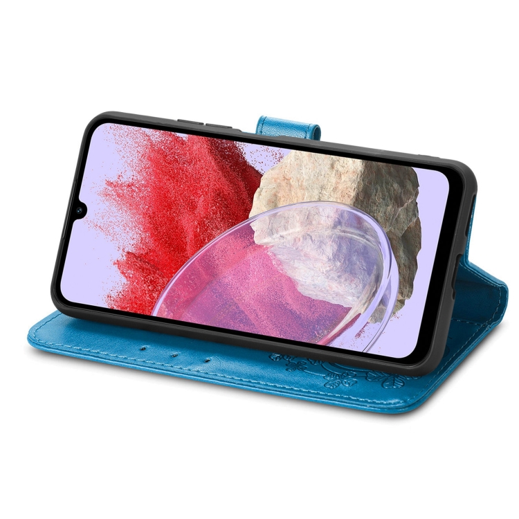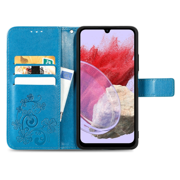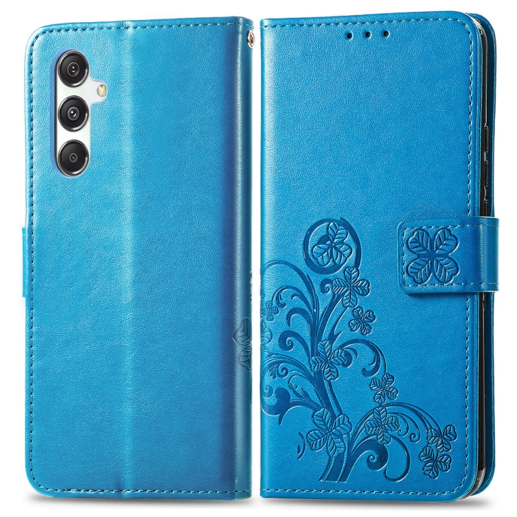 Funda para Samsung Galaxy M34 5G Cuero con Hebilla en Relieve y Cierre de Cuatro Hojas (Azul)