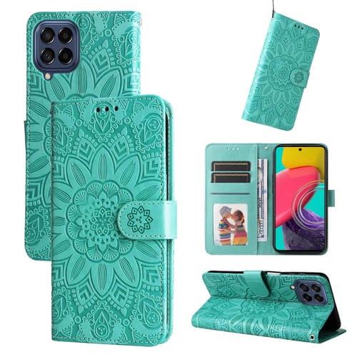 Estuche para teléfono Samsung Galaxy M53 5G Cuero Estampado Girasol En Relieve (Verde)